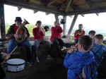 Um 14 Uhr trafen sich die jüngsten der Narrenzunft mit dem Vorstand des Narrasomas im Narrenstall. Mit guter Laune trotz des schlechten Wetters ging es dann hinauf zur Nähberg-Ruine. Oben angekommen gab es dann die Geschichte des "Nähberg-Goischts" zu hören, gefolgt von Musik von der Jugend-Lumpenkapelle, die für gute Stimmung sorgte. Danach ging es wieder hinunter ins Ort.